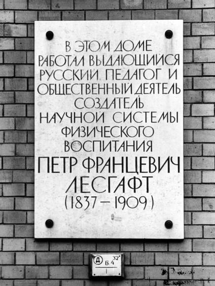 Лесгафт Петр Францевич (1837-1909) – ученый-анатом, педагог. Родился в Петербурге, в семье ювелира. В 1861 году окончил Медико-хирургическую академию в Петербурге и был оставлен при ней для научной работы. С 1865 года – доктор медицины, читал лекции по анатомии на естественном факультете Петербургского университета, на Рождественских женских курсах, работал в области организации физического воспитания и образования в военно-учебных заведениях, основал учебно-гимнастические курсы для офицеров при военной гимназии. Как педагог, при воспитании детей придавал большое значение подвижным играм как средству не только физического развития, но и формирования темперамента и характера ребенка. В 1893 году П. Ф. Лесгафт организовал Биологическую лабораторию, которая в 1918 году была преобразована в институт его имени.