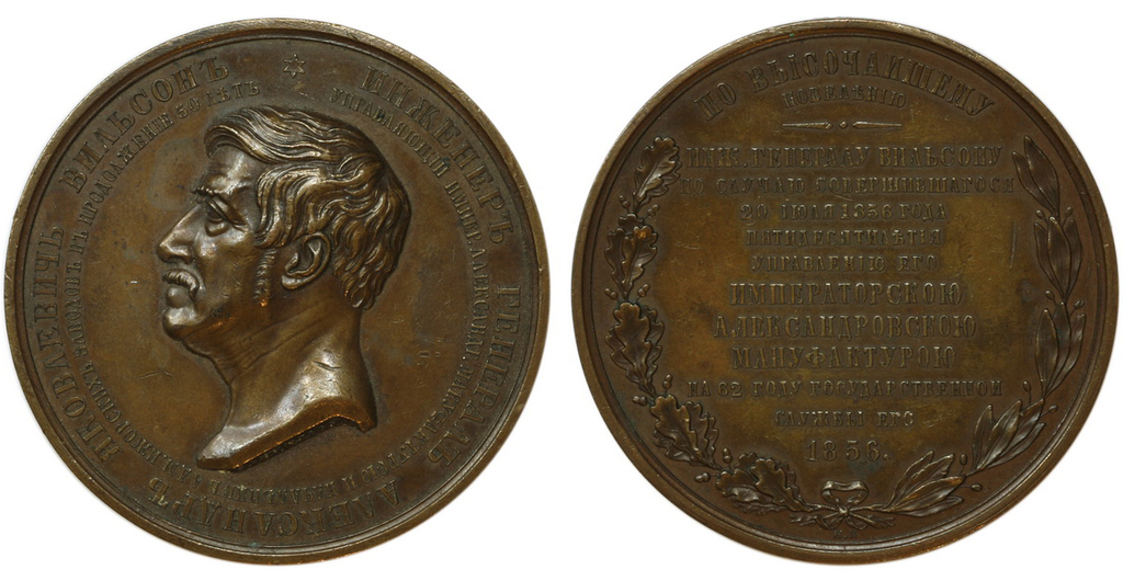Вильсон Александр Яковлевич (1776-1866) – инженер, организатор производства, бессменный директор Александровской мануфактуры и Ижорских заводов.