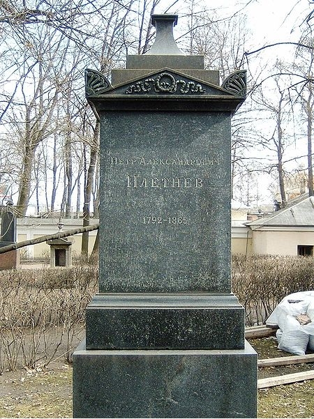 Плетнев Петр Александрович (1792-1865) – поэт, критик, издатель. Родился в Тверской губернии, в семье священника. Первоначальное образование получил в духовной семинарии, затем учился в педагогическом институте. С 1832 года – профессор российской словесности Петербургского университета, в 1840-1861 годах – ректор Петербургского университета, член Академии наук. П. А. Плетнев был верным другом А. С. Пушкина, первым помощником его в литературных делах. Еще в годы михайловской ссылки поэт постепенно передал ему посредничество в издании своих произведений, и он выпустил в свет (нашел издателя и книгопродавца, решил типографские, материальные и иные проблемы) более 20 книг поэта, причем совершенно бескорыстно. Петру Александровичу посвящен «Евгений Онегин». В «Посвящении» автор назвал его человеком «души прекрасной, святой исполненной мечты, поэзии живой и ясной, высоких дум и простоты». Он был «правой рукой» А. С. Пушкина и в журнале «Современник», а после гибели поэта продолжил издание.
