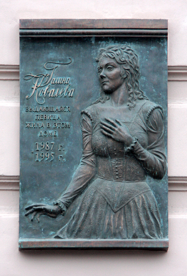 Ковалева Галина Васильевна (1932-1995) – певица. Родилась в Краснодарском крае. После окончания Саратовской консерватории, с 1960 года – в Театре оперы и балета им. С. М. Кирова (Мариинский театр), где дебютировала в роли Розины в опере «Севильский цирюльник». Талант и мастерство певицы позволял ей исполнять труднейшие партии колоратурного сопрано. Среди лучших ее партий – Людмила («Руслан и Людмила») и Антонида («Иван Сусанин») в операх М. Глинки, Джильда, Виолетта, Леонора («Риголетто», «Травиата», «Трубадур» Дж. Верди). С большим успехом Г. В. Ковалева гастролировала по стране и за рубежом (Болгария, Франция, Италия, Канада, Япония и др.). С 1971 года преподавала в Консерватории (с 1980 года профессор). В 2008 году на доме 97 набережной канала Грибоедова, где жила певица, была установлена мемориальная доска. 2 мая ее открыл художественный руководитель Мариинского театра Валерий Гергиев, отметив при этом великий талант певицы, чей голос называли «золотым сопрано», «лучшим голосом мира», «голосом века».