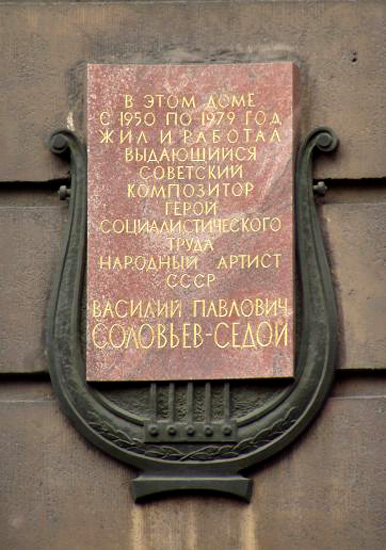 Соловьев-Седой Василий Павлович (1907–1979) – композитор. Родился в Петербурге. К музыке впервые приобщился с помощью соседа – виолончелиста, побывал на спектаклях «Борис Годунов» и «Севильский цирюльник», где пел Федор Шаляпин. В кинотеатре впервые увидел пианино и, попросив разрешения, подобрал по слуху песню «Светит месяц». Ему было позволено приходить и музицировать. В 1931 году поступил в консерваторию. В качестве композитора-песенника был замечен на конкурсе массовых песен в Ленинграде в 1936 году. В годы войны композитором было написано много замечательных песен: «Вечер на рейде», «На солнечной поляночке», «Не тревожь ты себя, не тревожь» и другие. После войны писал песни для кинофильмов. У всех на слуху были тогда: «Давно мы дома не были», «Пора в путь-дорогу», «Если бы парни всей земли», «Подмосковные вечера» – больше 50 песен.