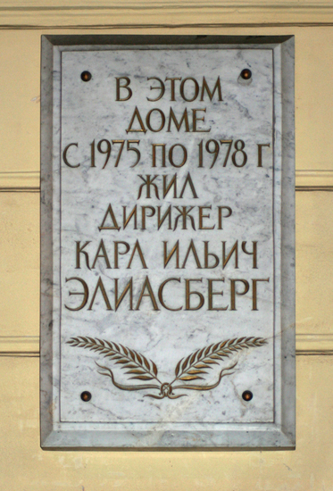 Элиасберг Карл Ильич (1907-1978) – дирижер. Родился в Минске. Окончил ленинградскую Консерваторию. В 1929-1931 гг. – дирижер Театра музыкальной комедии. Затем стал дирижером вновь организованного Большого симфонического оркестра, главным дирижером оркестра радио, с 1938 года активно гастролирует вместе с лучшими оркестрами СССР. С 1941 г. и все годы Великой Отечественной войны возглавлял оркестр Ленинградского радио. 9 августа 1942 г. по радио из осажденного города на весь мир прозвучала Седьмая симфония Д. Д. Шостаковича («Ленинградская»). Люди понимали: город живет и борется. Во время исполнения симфонии на город не упал ни один вражеский снаряд, ни одна фашистская бомба. По приказу командующего Ленинградским фронтом маршала Л. А. Говорова все вражеские точки были заблаговременно подавлены. Работу дирижера приравняли к подвигу, наградив орденом Красной Звезды «за борьбу с немецко-фашистскими захватчиками» и присвоив звание «Заслуженный деятель искусств РСФСР».