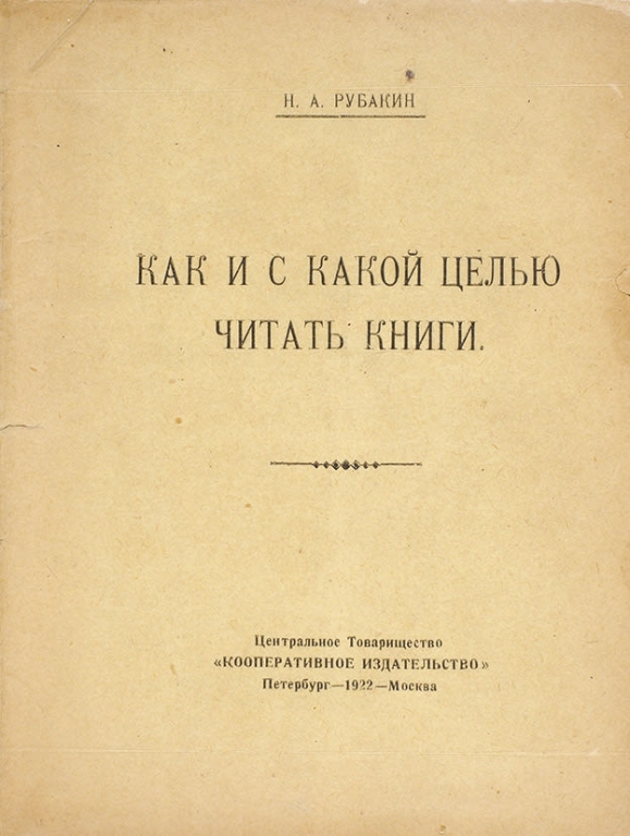 Николай Александрович Рубакин (1862-1946) – русский книговед, библиограф, популяризатор науки, писатель, энциклопедически образованный человек, читавший по нескольку книг в день. Родился 13 июля 1862 г. в Ораниенбауме (ныне город Ломоносов), в семье городского головы. Уже в 13 лет появилась первая публикация Николая — сатирические стихи. В Петербургском университете он учился одновременно на естественном, историко-филологическом и юридическом факультетах.