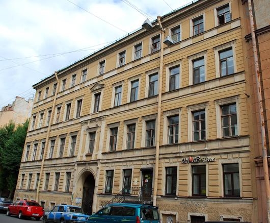 Жил на 7-й линии В. О. и в Дмитровском (Хлебном) пер., 16