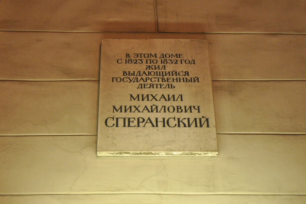 Мем. доска на доме, где жил М.М. Сперанский, — Невский пр., 42.