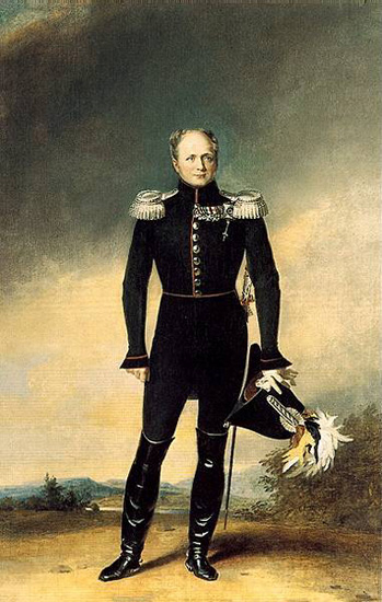 Александр I (1777-1825) – император Российской империи (c 1801 г.), сын Павла I. В начале правления предпринял ряд либеральных реформ. Им был издан Указ о вольных хлебопашцах, согласно которому было разрешено отпускать крестьян на волю; были открыты университеты, Царскосельский лицей. Однако попытки обновления российского государства сопровождались установлением полицейского режима, позднее получившего название «аракчеевщины». Император принял участие в союзах против Наполеона, присутствовал при главных сражениях 1813-1814 гг. Во главе союзных войск в 1814 г. вступил в Париж. За время его правления значительно расширились границы Российской империи.