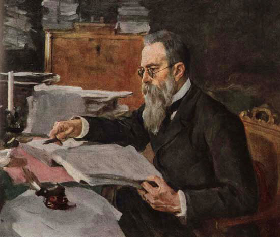 Римский-Корсаков Николай Андреевич (1844-1908) – композитор. Родился в старинной дворянской семье. С детства мечтая стать моряком, поступил в Морской кадетский корпус в Петербурге, увлекся музыкой, брал уроки фортепиано. Познакомился с композиторами, образовавшими впоследствии кружок «Могучая кучка». Окончив Морской корпус, отправился в плавание, побывал во многих портах Европы и Америки. Вернувшись в 1865 году в Петербург, дальнейшую свою жизнь отдал сочинению музыки. Пишет оперы: «Псковитянка» – первое сочинение, «Майская ночь» и «Ночь перед Рождеством» – по произведениям Н. В. Гоголя, «Снегурочка» – по пьесе А. Н. Островского) и др. Им созданы также выдающиеся симфонические произведения («Испанское каприччио», «Шехеразада»), сочинения для оркестра, популярные романсы.