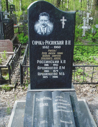 Сорока-Росинский Виктор Николаевич (1882-1960) – выдающийся педагог, в 1920-1925 гг. директор школы им. Ф. М. Достоевского, ставшей впоследствии известной на всю страну как «Республика Шкид». Работая с особо трудными подростками, знаменитый Викниксор создал оригинальную систему воспитания на основе развития творческих способностей детей. Глубокая вера, которая передалась его воспитанникам, в их благополучное будущее способствовала решению трудной педагогической задачи. Многие выпускники школы стали журналистами, учеными, писателями. Блестяще образованный, оставил богатое теоретическое наследство. Основными путями формирования национальной культуры и национального самосознания считал семейное воспитание, опирающееся на религию, труд, народные традиции, песенное и сказочное творчество, родительский авторитет. Решительно осуждал националистическое воспитание, проповедующее нетерпимость к другим нациям.