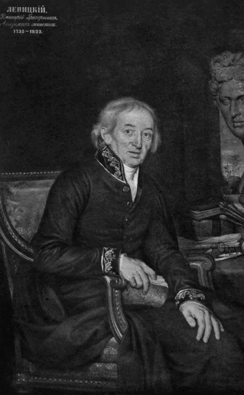 Левицкий Дмитрий Григорьевич (1735–1822) - художник-портретист. Родился на Украине в семье священника, который занимался гравированием и привил сыну любовь к искусству. С 1758 жил в Санкт-Петербурге и учился у А. П. Антропова (портретист, автор монументальных росписей, академик Императорской Академии художеств). В связи с коронацией Екатерины II, он принимал участие в работах над парадными портретами. Учился в Академии художеств, затем преподавал здесь же, в портретном классе. Его талант высоко ценили современники, он пользовался уважением Екатерины II, Павла I, Александра I и постоянно был востребован. В 1770 был удостоен звания академика Академии художеств. Большое место в его творчестве занимали камерные портреты, цикл которых открывает портрет Д. Дидро – правдивое раскрытие человеческого образа, одно из выдающихся произведений мирового портретного искусства. Из его произведений, рассеянных по императорским дворцам, музеям и аристократическим домам, более других известны: портрет Екатерины II во весь рост, шесть портретов воспитанниц Смольного института, портреты Александра I в детстве, играющего с великим князем Константином Павловичем, образы Г. Р. Державина, князя А. М. Голицына, П. В. Бакунина, Е. А. Бакуниной и др.