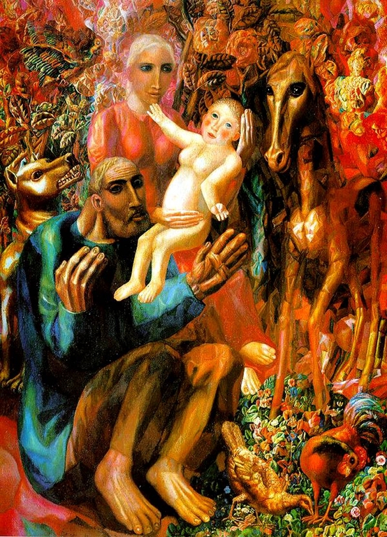 Филонов Павел Николаевич (1883–1941), художник, теоретик искусства. Родился в Москве, в мещанской семье. После переезда в Петербург в 1897 г. поступил в живописно-малярные мастерские, посещал вечерние рисовальные классы Общества поощрения художеств. В 1908 г. был принят вольнослушателем в школу при Академии художеств, но вскоре «добровольно вышел» из нее. В 1910 г. П. Филонов участвует в выставке «Союза молодёжи» с первой своей картиной «Головы» (картон, масло). Затем идут следующие выставки («Пир королей», «Крестьянская семья», «Мужчина и женщина»). Осенью 1916 г. П. Филонов был мобилизован и направлен на Румынский фронт рядовым. Затем он принимает активное участие в революции, занимает должность председателя Исполнительного военно-революционного комитета в Измаиле. Вернувшись в Петроград, П. Филонов принял участие в Первой свободной выставке произведений художников всех направлений — грандиозной выставке в Зимнем дворце (1919). Им были представлены полотна из цикла «Ввод в мировой расцвет». Две работы: «Мать» и «Победитель города» – были подарены государству. Другие две работы, том числе «Формула петроградского пролетариата» – Русскому музею. К 1922 г. относится безуспешная попытка реорганизовать живописный и скульптурный факультеты Академии художеств в Петрограде — идеи реформатора не находят официальной поддержки. Постепенно вокруг художника воздвигается стена изоляции и отвержения. Мастер голодает, но пишет масляными красками по бумаге или картону последние свои шедевры «Формула империализма», «Нарвские ворота», «Животные», «Лики». Художник принципиально не продавал своих работ за рубеж, поэтому практически все его наследие хранится в Русском музее.