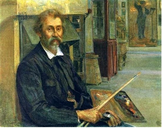 Репин Илья Ефимович (1844–1930), художник. Родился в семье военного поселенца. 19-летним юношей приехал в Петербург, поступил в Академию художеств. За успехи в учебе получил право поездки за границу. Три года знакомился с искусством во Франции, Италии, Англии, а вернувшись на родину, много ездил по России, побывал на Украине, в южных русских губерниях, на Кавказе. Работая над сюжетами своих картин, он тщательно заботился об их исторической достоверности, со знанием дела уточнял мельчайшие детали: мебель, костюмы, оружие, убранство интерьера. Одна из самых известных картин И. Е. Репина – «Бурлаки на Волге» потрясла общественность необычайной выразительностью изображения тяжести жизни трудового народа. В сентябре 1894 года И. Е. Репин в качестве профессора Академии художеств приступил к педагогической деятельности, активно участвовал в общественной жизни страны, занимался благотворительностью. Знаком международного признания его заслуг стало награждение живописца (1901) французским орденом Почетного легиона. В 1899 году И. Е. Репин поселился в финском местечке Куоккала, неподалеку от Петербурга, где и провел остаток лет своей долгой жизни. В 1948 году Куоккала была переименовали в Репино.