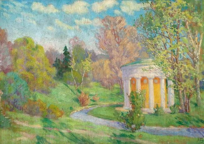 Гауш Александр Федорович (1873-1947) – художник, коллекционер, меценат. Окончил Академию художеств (1899), ученик П. П. Чистякова и А. А. Киселева. Один из организаторов «Нового общества художников», член объединения «Мир искусства», Товарищества южно-русских художников. С весны 1907 г. участвовал в деятельности Комиссии по изучению и описанию старого Петербурга, с октября 1909 г. член дирекции и первый хранитель Музея старого Петербурга. Вместе с А. Н. Бенуа оформлял «Историческую выставку архитектуры» в залах Академии художеств. Преподавал в учебных заведениях Петрограда (до 1924), Севастополя, в Одесском художественном институте (профессор с 1928 г.). Работы художника хранятся во многих картинных галереях России, Украины, музеях Армении, Казахстана и частных коллекциях.