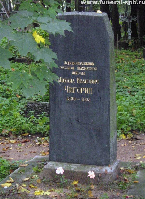 Чигорин Михаил Иванович (1850-1908) – шахматист. Родился в Гатчине, в семье заводского мастера. В восемь лет осиротел и был отправлен в Гатчинский сиротский институт. Затем поступил на государственную службу, но вскоре оставил ее, отдавшись исключительно шахматному искусству. В 1874 году уже участвовал в турнире с известными петербургскими шахматистами. В 1878 году получил первый приз в турнире всех сильнейших игроков своего времени. Он показал себя и замечательным шахматным аналитиком, участвуя в матче по переписке Петербурга с Харьковом, затем в матче по телеграфу с Лондоном. Издавал «Шахматный листок», редактировал «Шахматный вестник», заведовал шахматным отделом российской газеты «Новое время», издаваемой в Петербурге. Михаил Иванович воспитал новое поколение русских шахматных мастеров, создал традиции отечественных шахмат. Шахматной федерацией России в его честь проводятся мемориальные турниры, учреждена медаль его имени.