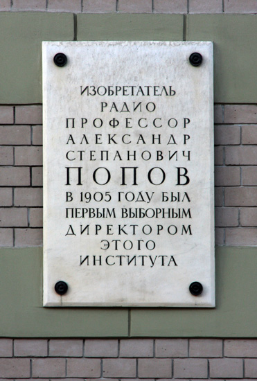 Мемориальный музей А. С. Попова - ул. Профессора Попова, 5, в здании ЛЭТИ.