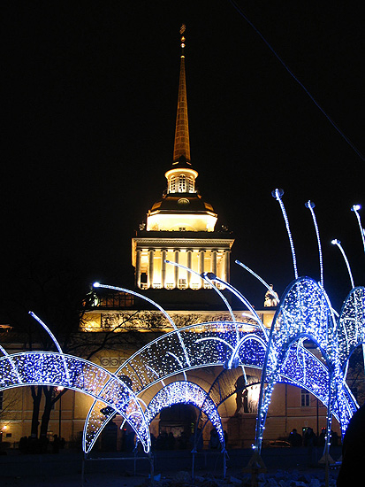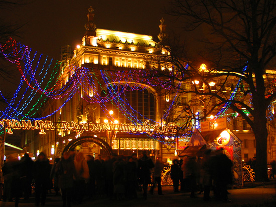 Дворцовая пл. - главная елка города Невский пр., 39 - Дворец творчества юных, - новогодние утренники Петропавловская крепость - главная праздничная площадка Пионерская площадь, 1, - ТЮЗ им. Брянцева, - новогодние спектакли