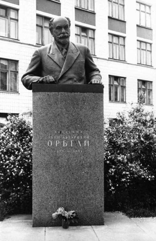 Памятник-бюст академику, Герою Социалистического Труда Леону Абгаровичу Орбели (1882-1958) сооружен по инициативе научной общественности Ленинграда и установлен перед зданием института, где долгие годы работал знаменитый физиолог. Скульптор Д. Епифанов, архитектор Л. Шретер. Материалы: бронза – бюст; гранит серый полированный – постамент; гранит серый кованый – основание. Высота бюста 1,5 м, высота постамента 3 м. Открыт 6 ноября 1969 г.