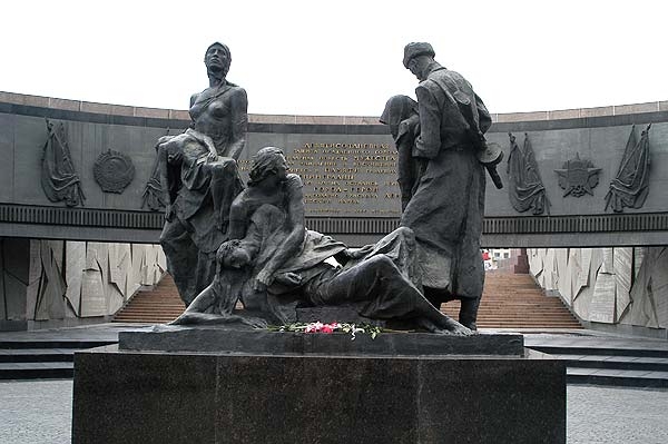 Монумент был открыт 9 мая 1975 г. к 30-летию победы в Великой Отечественной войне. Авторы мемориального комплекса - лауреаты Государственной премии, народные художники СССР С. Сперанский, В. Каменский, М. Аникушин. Южный фасад мемориала – «Площадь Победителей». На гранитных пилонах установлены 26 бронзовых скульптур – это образы защитников Ленинграда. Главная вертикаль – 48-метровый гранитный обелиск. У его основания – скульптурная группа «Победители»: фигуры рабочего и солдата. Обелиск – связующее звено между «Площадью Победителей» и полукруглым Памятным залом «Блокада». К нему ведут широкие лестницы по обеим сторонам постамента обелиска. По замыслу авторов, поверхность стен сохраняет фактуру деревянной опалубки – такими были оборонительные сооружения военных лет. 23 февраля 1978 г. был открыт подземный Памятный зал. Здесь размещена документально-художественная экспозиция, посвященная обороне и блокаде Ленинграда.