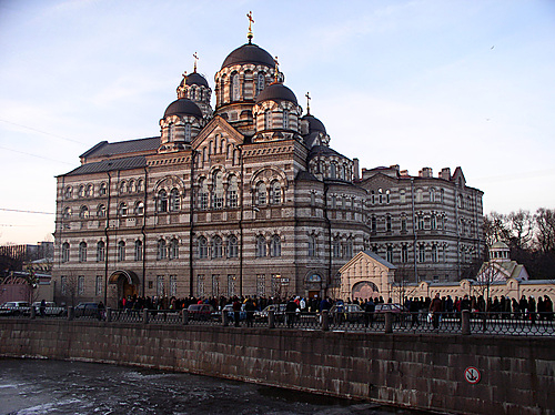 Основан в 1900 г. святым праведным отцом Иоанном Кронштадтским, одним из наиболее почитаемых и любимых в народе священником. Главный архитектор: Н. Н. Никонов. В 1909 г. монастырь стал первоклассным, при нем имелся приют, мастерская, действовало Общество в память о. Иоанна. Обители принадлежал также благоустроенный скит в Ярославской губернии. К 1917 г. монастырь стал важнейшим центром духовной жизни, монастырских ремесел, благотворительной, издательской, просветительской деятельности. В 1989 г. монастырь вернули верующим; в нем разместилось подворье Пюхтицкого монастыря. После освещения в 1991 г. монастырь стал именоваться Свято-Иоанновским. В монастырский комплекс входят: собор святых Двенадцати Апостолов (в третьем этаже), церкви св. Иоанна Рыльского (в первом этаже), св. Илии и Феодоры (в крипте), часовня св. Серафима Саровского. В подземной усыпальнице монастыря, в гробнице, хранятся мощи св. Иоанна Кронштадтского. Доступ в усыпальницу открывается после богослужения. Адрес: наб. р. Карповки, 45