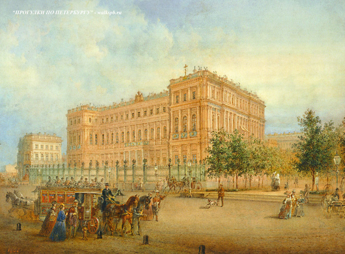 Николаевский дворец – парадная резиденция третьего сына Николая I – был заложен 21 мая 1853 г. возле Благовещенского моста через Неву по проекту архитектора А. И. Штакеншнейдера. Двусветная домовая церковь, выполненная, как и дворец, в стиле итальянского неоренессанса, располагается в его восточной части, со стороны сада. Она была освящена 24 октября 1863 г. во имя Божией Матери «Всех скорбящих Радость». Церковь имеет звонницу с семью колоколами. Живописные работы в интерьере храма выполнил немецкий профессор живописи Л. Тирш. Серебряная церковная утварь была изготовлена на фабрике поставщика его императорского дворца В. Сазонова. Церковь могла вместить до 60 человек. В 1872 г. по проекту Ф. С. Харламова под алтарем была устроена часовня с приделами великомученицы Варвары и апостола Петра. В 1918 г. домовая церковь была закрыта. Благодаря тому, что во дворце разместился Дворец труда (центр профсоюзных организаций), здание хорошо сохранилось, в том числе церковь, правда, с утраченной маковкой. В 1999 г. в домовой церкви возобновились богослужения.