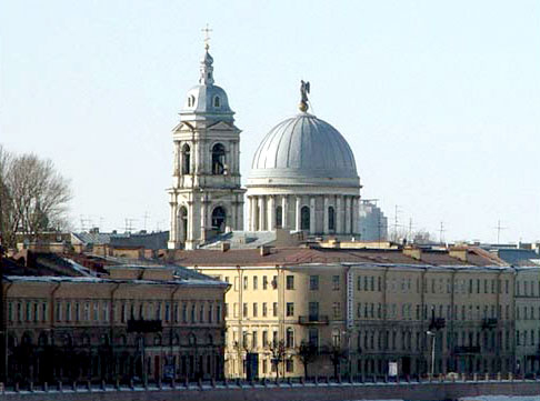 Строительство храма начато было в 1811 г. на месте сгоревшей деревянной Екатерининской церкви. Было приостановлено в связи с началом Отечественной войны 1812 г. и завершено в 1823 г. Архитекторы профессор А. А. Михайлов и В. А. Болотов. Строителем назначен купец И. Водовозов, надзирал за работами каменных дел мастер Н. Камельский. В своем основании церковь имела вид равноконечного креста, увенчанного одноглавым куполом. На верху купола стоял обитый свинцом ангел, в руках которого находился медный вызолоченный через огонь крест. Шар, на котором утверждался крест, тоже был вызолоченным. Кругом купола стояли 24 колонны коринфского ордера. С 1863 г. произошли наружные изменения храма: пристроена колокольня, устроена между колоннами стеклянная галерея, обиты белым листовым железом купол храма, вся кровля окрашена зеленой масляной краской. Закрыт в 1935 г. В 1942 г. снаряды попали только в часовенку, но церковь осталась невредима. В 1996 г. передана верующим и освящена. Храм является культурным объектом федерального значения. Адрес: В. О. Кадетская линия, 27а