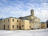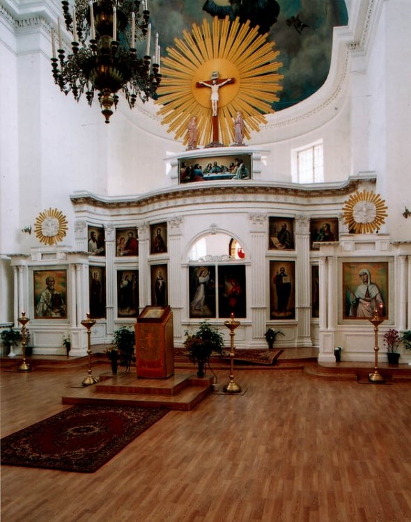 Первое каменное сооружение города Павловска. В мае 1781 г. архитектор Дж. Кваренги на левом берегу Славянки приступил к строительству церкви с примыкающими к ней одноэтажными флигелями для богадельни и госпиталя. Позднее в церкви находились знамена и штандарты некоторых русских полков, а также трофеи - знамена и кормовые флаги французских, итальянских и голландских войск, отбитые нашей армией под предводительством А. В. Суворова во время войны 1799 г. В надстройке одноэтажного флигеля впоследствии разместился Мариинский госпиталь для увечных воинов. После революции храм был закрыт, в госпитале долгие годы размещалось фабричное производство. В 1995 г. здание было возвращено общине, но в аварийном состоянии. В связи с отсутствием средств на восстановление так прошло еще несколько лет - до 1998 г., когда и началась реставрация. В 1999 г. храм был вновь освящен, в нем стали проводиться регулярные богослужения. Сейчас церковь привлекает к себе внимание посетителей расположенных рядом дворца и парка сиянием позолоченного креста на обновленном куполе звонницы храма и звоном колоколов.
