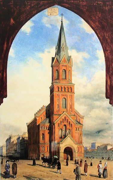 Построена в 1862-1865 гг. Архитекторы: Г. А. Боссе, Д. И. Гримм. Одна из первых в Петербурге имела кирпичную отделку. Принадлежала к лучшим образцам архитектурных произведений. Реконструкция: 1872-1874 гг. (архитектор К. К. Рахау). В начале 1930-х гг. церковь была снесена (остался нетронутым только каркас здания) и на ее месте построен Дворец культуры и техники работников связи. Адрес: Б. Морская ул., 58