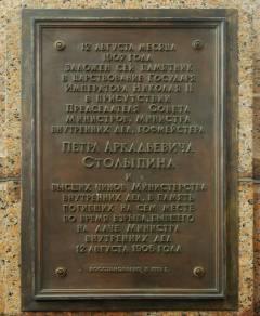 Этот уникальный обелиск связан с трагическими событиями в истории России. Покушение на председателя Совета министров Петра Аркадьевича Столыпина было совершено 12 августа 1906 г. на Аптекарском острове, напротив Ботанического сада, во время приема на даче официальных и частных лиц. П.А. Столыпин не пострадал, но тридцать человек были убиты, и тридцать два – ранены. Дочь и сын П.А. Столыпина также получили тяжелые ранения и увечья.