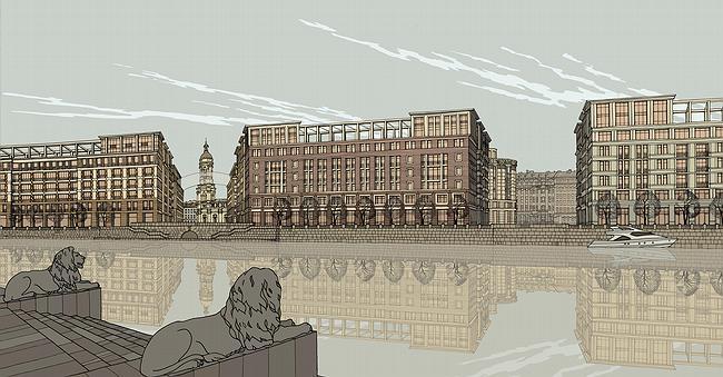 На месте современной набережной на Петроградской стороне между Тучковым и Биржевым мостами предполагается создать многофункциональный комплекс. Общая площадь земельного участка – около 10 га. Площадь застройки – 440 тыс. квадратных метров. Комплекс будет состоять из элитного жилья, гостиничного комплекса, торгово-офисного центра. Одним из ключевых элементов проекта станет первая в Петербурге пешеходная набережная, а также театр танцев Бориса Эйфмана. Проект финансирует ОАО «Банк ВТБ». Срок окончания реализации проекта – 2016 год. Общий объем инвестиций в проект составит около 2 млрд долларов.