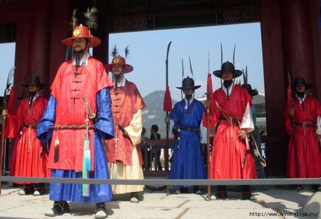 Корейцы (чосон сарам) - один из древнейших народов Восточной Азии. Среди верующих преобладают буддисты. Традиционными занятиями были шелководство, добыча морских животных, сбор водорослей. Национально-культурная автономия в Санкт-Петербурге образовалась в 1989 году, и сегодня здесь проживает более 6 тыс. корейцев. Они работают во всех сферах культуры, науки, в аграрном секторе и промышленности. Некоторые из них стали знаковыми фигурами в русской культуре: рок-музыкант В. Цой, писатель А. Ким, доктор исторических наук В. Ли и многие другие. В городе работает Санкт-Петербургское отделение Ассоциации российских корейцев «Бомминрен» («Всенациональное единство»), которое в сотрудничестве с КНДР и Республикой Корея укрепляет дружбу своего народа с другими народами, популяризирует корейскую национальную культуру. В августе 2003 года (по случаю 300-летия основания города) на охрану Санкт-Петербурга заступили древние корейские стражники "чансыны" – 15 деревянных фигур в парке "Сосновка".