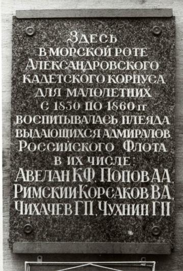 Мемориальная доска Авелану Ф. К. (и другим адмиралам, воспитывавшимся в Александровском кадетском корпусе), - Кадетский бульвар, 1.
