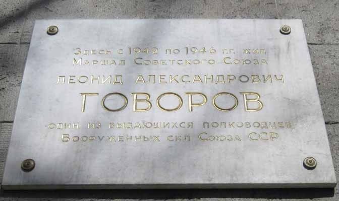 Мемориальная доска ул. Маршала Говорова, 2