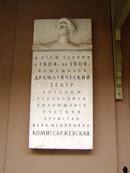 Мемориальная доска - здание театра им. В. Ф. Комиссаржевской, Итальянская улица, 19.