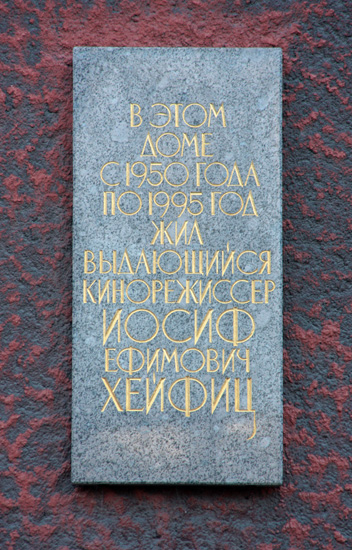 Хейфиц Иосиф Ефимович (1905-1995) - выдающийся кинорежиссер и сценарист, родился 17 декабря 1905 года в Минске. Учился в Ленинградском техникуме экранного искусства и на кинофакультете Института истории искусств. В 1928 году Иосиф Хейфиц пришел на кинофабрику «Совкино» (ныне – киностудия «Ленфильм») и проработал там всю жизнь. Дебютировал сначала как сценарист, позже стал режиссером-постановщиком. С 1928 по 1950 годы работал совместно с Александром Зархи. Мировую известность принесли им фильмы «Депутат Балтики» (1937) и «Член правительства»(1940). В 1950-е годы в центре внимания И. Е. Хейфица оказались проблемы современности. В эти годы режиссер снял такие известные картины, как Большая семья» (1954), «Дело Румянцева» (1955), «Дорогой мой человек» (1958). В 1960-е годы Хейфиц начал серию экранизаций русской классики, первая из которых – чеховская «Дама с собачкой» (1960) получила единодушно высокую оценку в стране и за рубежом (в частности, приз Международного кинофестиваля в Канне, 1960). В союзе с оператором А. Н. Москвиным и актерами А. В. Баталовым и И. С. Саввиной И. Е. Хейфиц создал сложный мир чеховской России, в котором разыгрывается глубокая любовная драма двух незаурядных, но зависимых от жизненных обстоятельств героев. И. Е. Хейфиц успешно разрабатывал жанр мелодрамы и на современном материале: «Единственная» (1985), «Впервые замужем» (1979), «Подсудимый» (1985), «Вы чье, старичье?» (1988). Из трех десятков картин, созданных мастером, многие стали классикой отечественного кинематографа. И. Е. Хейфиц – обладатель призов международных и отечественных кинофестивалей. Последней наградой режиссера стала премия «НИКА», полученная им в номинации «Честь и достоинство» в 1992 году. Умер 24 апреля 1995 года в Санкт-Петербурге, похоронен на Мемориальном кладбище в поселке Комарово.