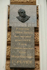 Горбачев Игорь Олегович (1927-2003) – актер, режиссер. В 1945 г. поступил на философский факультет Университета, играл в студенческом театре. В 1954-1959 гг. учился в театральном институте, одновременно (и до конца своих дней) играя в Академическом театре драмы им. А. С. Пушкина (Александринском). Среди ролей: Алексей («Оптимистическая трагедия» В. В. Вишневского), Устименко («Дело, которому ты служишь» по Ю. П. Герману), Чичиков («Похождения Чичикова, или Мертвые души» по Гоголю), Иванов (одноименная пьеса А. П. Чехова) и др. Среди режиссерских постановок: «Мария Тюдор» В. Гюго, «Веранда в лесу» И. М. Дворецкого, «Вечер» А. А. Дударева, «Фельдмаршал Кутузов» В. А. Соловьева и др. Преподавал в институте театра, музыки и кинематографии (ныне Академия Театрального искусства; проф. с 1983). Снимался в кино и на телевидении («Все остается людям», «Операция “Трест”», «Укрощение огня» и др.). Отмечен орденом «Созидатель Санкт-Петербурга» (2001). Учредитель и ректор Театрального института «Школа русской драмы».