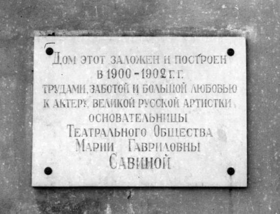 Савина Мария Гавриловна (1854-1915) русская актриса, более сорока лет выступавшая на сцене Александринского театра. Считалась одной из лучших исполнительниц в пьесах Островского, поручавшего ей главные роли почти во всех своих новых пьесах, и Тургенева, воплотив образы «тургеневских женщин», ставших высшими достижениями в ее творчестве.. Среди значительных ее ролей – Марья Антоновна в гоголевском «Ревизоре» и Акулина во «Власти тьмы» Л. Толстого. Савину отличали тонкая передача скрытых переживаний, точность пластики и интонаций. В числе других заслуг Савиной на ниве общественной деятельности – организация Русского театрального общества (нынешний Союз театральных деятелей РФ), в котором она председательствовала несколько лет, а также Дома ветеранов сцены, носящего ныне ее имя.