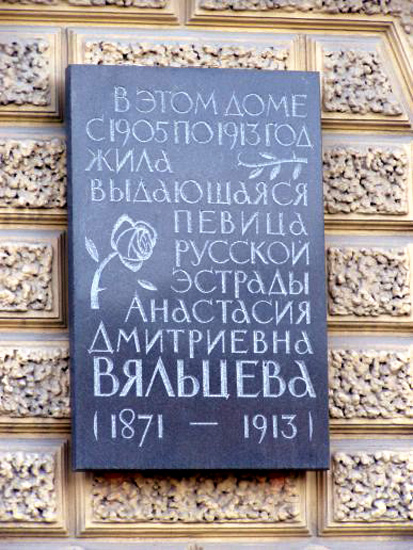 Вяльцева Анастасия Дмитриевна (1871-1913) – певица, артистка оперетты. Родилась в Брянской обл., в бедной семье. В 1890 году поступила в хор Киевского товарищества опереточных артистов и отправилась в гастрольную поездку. В Петербурге выступала в опереточной труппе в Малом театре, затем в труппе Пальма, где исполняла ведущие партии опереточного репертуара, изредка пела в операх. После успешного выступления с сольной программой романсов (1897) начала концертировать, выступала во многих городах России. Прославилась как исполнительница цыганских романсов, поражала слушателей искренностью исполнения. Ее называли «певицей радостей жизни», потому что, отбирая песни в свой репертуар, она отвергала те, в которых были слова «разлука», «печаль», «горе», «тоска»… Во время Русско-японской войны отправилась в Маньчжурию, стала сестрой милосердия в полевом госпитале, при этом регулярно выступала с концертами для раненых.