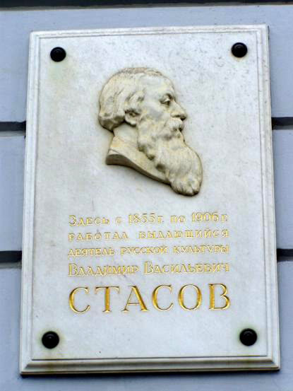 Стасов Владимир Васильевич (1824-1906) – музыкальный и художественный критик. Родился в семье архитектора. Получил прекрасную домашнюю подготовку, завершив образование в Училище правоведения. Помимо служебных занятий, главным своим делом считал изучение искусства и сотрудничество в крупнейших русских журналах «Отечественные записки», «Современник», «Библиотека для чтения» и др. Энциклопедически образованный человек, он писал статьи по истории искусства, культуры, археологии, фольклору. Всячески поддерживал молодых художников «Товарищества передвижных выставок». Познакомившись в Петербурге с молодыми композиторами М. А. Балакиревым, М. П. Мусоргским, Н. А. Римским-Корсаковым, А. П. Бородиным, Ц. А. Кюи, назвал их «могучей кучкой», стал первым в истории русской культуры профессиональным художественным и музыкальным критиком. В 1900 году был избран почетным академиком Академии наук.