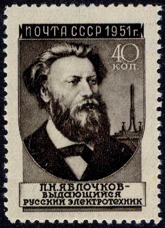 Яблочков Павел Николаевич (1847-1894) – изобретатель. Образование получил в Саратовской гимназии, затем в Николаевском инженерном училище в Петербурге. В 1875 году он изобрел электрическую свечу – первую модель дуговой лампы без регулятора, в которой угли были помещены параллельно друг другу и разделялись слоем изолирующего вещества каолина. По мере сгорания углей каолин испарялся, дуга же продолжала гореть. В 1875 году П. Н. Яблочков уехал в Париж, где сконструировал промышленный образец электрической лампы. Создал систему освещения («Русский свет»), продемонстрированную на Всемирной выставке в Париже. В 1879 году организовал в Петербурге «Товарищество электрического освещения» и электромеханический завод , будучи хозяином которого, усовершенствовал электрические машины, гальванические элементы и аккумуляторы, участвовал в электротехнических выставках в России и Франции, был активным членом Русского технического общества.