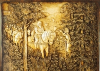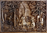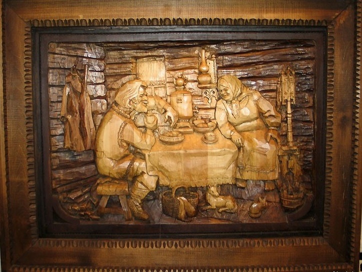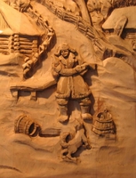 Его работы по дереву (в основном это липа) – своеобразный поэтический рассказ о Севере: карело-финский эпос «Калевала», природа Валаама, быт и праздники русского народа.