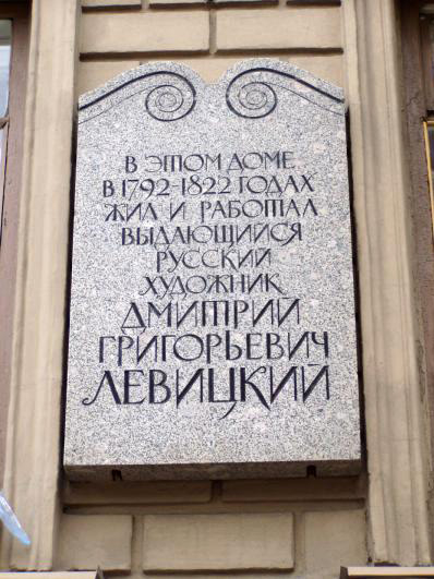 Левицкий Дмитрий Григорьевич (1735–1822) - художник-портретист. Родился на Украине в семье священника, который занимался гравированием и привил сыну любовь к искусству. С 1758 жил в Санкт-Петербурге и учился у А. П. Антропова (портретист, автор монументальных росписей, академик Императорской Академии художеств). В связи с коронацией Екатерины II, он принимал участие в работах над парадными портретами. Учился в Академии художеств, затем преподавал здесь же, в портретном классе. Его талант высоко ценили современники, он пользовался уважением Екатерины II, Павла I, Александра I и постоянно был востребован. В 1770 был удостоен звания академика Академии художеств. Большое место в его творчестве занимали камерные портреты, цикл которых открывает портрет Д. Дидро – правдивое раскрытие человеческого образа, одно из выдающихся произведений мирового портретного искусства. Из его произведений, рассеянных по императорским дворцам, музеям и аристократическим домам, более других известны: портрет Екатерины II во весь рост, шесть портретов воспитанниц Смольного института, портреты Александра I в детстве, играющего с великим князем Константином Павловичем, образы Г. Р. Державина, князя А. М. Голицына, П. В. Бакунина, Е. А. Бакуниной и др.