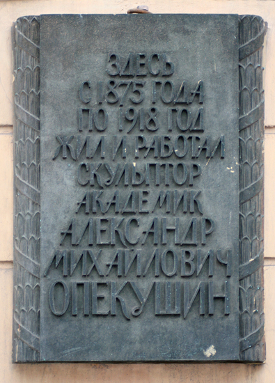 Опекушин Александр Михайлович (1838–1923), художник, скульптор-монументалист. Родился в семье крепостного крестьянина, который был скульптором-самоучкой. Отпущенный на волю, еще мальчиком работал в подмастерьях у скульптора Д. И. Иенсена в Петербурге, под его же началом учился в Академии художеств. В 1869 г. получил диплом «классного художника». Под руководством скульптора М. О. Микешина принял участие в создании монумента «Тысячелетие России» в Новгороде, вылепив для него фигуру Петра I, а также в работе над памятником Екатерине II в Петербурге, для которого исполнил по собственным эскизам 9 фигур, в том числе А. Г.Орлова и В. Я. Чичагова. В 1870-е годы в нем проявился дар ваятеля-романтика, умеющего воплотить образ знаменитости торжественно и в то же время очень человечно. Именно это ярко проявились в его шедевре – памятнике А. С. Пушкину для Москвы, затем ему же в Петербурге, М. Ю. Лермонтову в Пятигорске, Н. Н. Муравьеву-Амурскому в Хабаровске. Наиболее грандиозными стали памятники Александру II в Московском Кремле и Александру III близ храма Христа Спасителя, демонтированные после Октябрьской революции (равно как и монумент Н. Н. Муравьеву-Амурскому). В последние годы жизни скульптор отошел от активной творческой деятельности, уединившись в своем имении.