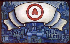Рерих Николай Константинович (1874–1947), художник, писатель и философ. Родился в Петербурге, в семье нотариуса. В юности брал уроки рисования у М. О. Микешина. Поступил одновременно в Петербургский университет, где занимался на юридическом факультете, и в Академию художеств, в мастерскую А. И. Куинджи. До революции жил преимущественно в Петербурге. Был членом, затем председателем объединения «Мир искусства». На рубеже веков занимался изучением славянских и угро-финских древностей; опубликовал несколько археологических отчетов о раскопках. Органично соединив археологию с искусством, написал цикл архитектурно-исторических пейзажей Пскова, Ростова Великого, Изборска и других старинных русских городов. Выступал также как мастер книжно-журнальной графики, театральный дизайнер и декоратор. Литературное творчество Рериха представлено в единственной книге собрания сочинений и в сборнике стихов. В 1920 переехав в США, Н. К. Рерих основал там вместе с женой «Общество Агни-Йоги» для распространения учения морального усовершенствования человечества на базе древних религий. В 1923 г. он начинает свою Трансгималайскую экспедицию с целью исторического и топографического изучения Центральной Азии. Духовным итогом путешествий явились книги «Алтай–Гималаи», «Сердце Азии» и «Шамбала». Еще более известны его живописные «самоцветные» гималайские пейзажи тех лет. Рериховские идеи «Мира через культуру» были воплощены в специальном Пакте его имени, который лег в основу международной конвенции о защите культурных ценностей при вооруженных конфликтах. В поздний период мастер по-прежнему активно работал как живописец. Вести с фронтов Второй мировой войны вдохновили его на национально-романтический цикл на темы русских былин.