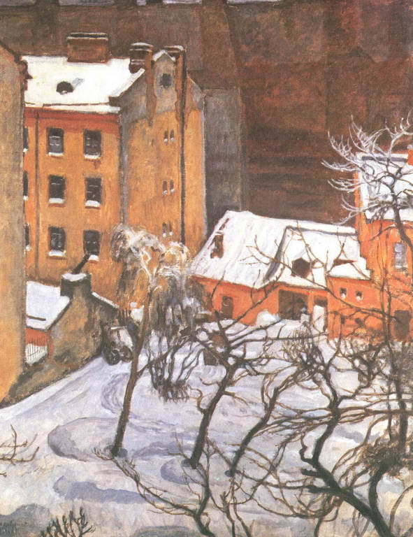 Добужинский Мстислав Валерьянович (1875-1957) – график, живописец, театральный художник. Учился в Рисовальной школе, на юридическом факультете Петербургского университета, затем сам стал преподавателем. Член объединения «Мир искусства». Особое место в его творчестве занимали пейзажи городов, прежде всего Петербурга, представленные в непарадном, иногда призрачном и трагическом облике: «Уголок Петербурга», «Домик в Петербурге», «Петербург» – пастель, гуашь, цикл литографий «Петербург в 1921 г.» и др. Художник иллюстрировал повести «Станционный смотритель» А. С. Пушкина (1906) и «Портрет» Н. В. Гоголя (1909), сказку «Свинопас» Х. К. Андерсена (1917). Особенно знамениты иллюстрации к роману «Белые ночи» Ф. М. Достоевского (1923). Рисовал и для журналов «Мир искусства», «Золотое руно», «Аполлон» и др., оформлял драматические спектакли для театров, участвовал в оформлении массовых театрализованных представлений. В 1924 г. эмигрировал. В 1943 г. исполнил цикл воображаемых пейзажей блокадного Ленинграда.