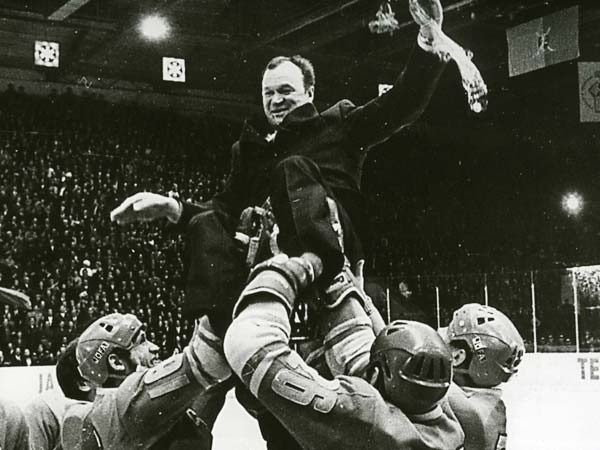 Бобров Всеволод Михайлович (1922-1979 ) – спортсмен и тренер. Родился в Моршанске, в 1925 году семья переехала в Сестрорецк. После окончания школы работал слесарем-инструментальщиком на заводе, вместе с братом Владимиром играл зимой в хоккей, летом в футбол. В 1938 г. братьев пригласили выступать за команду «Динамо». В начале Великой Отечественной войны завод был эвакуирован в Омск. Всеволод начал выступать за футбольную сборную города, а вскоре стал курсантом военного интендантского училища. Зимой 1944 года начал играть за хоккейную команду ЦДКА - Центрального Дома Красной Армии. Многочисленные травмы заставили его сделать окончательный выбор в пользу хоккея с шайбой, и он стал тренером сборной команды СССР по хоккею в 1972-1974 годах, которая под его руководством была чемпионом мира в 1973-1974 годах. Всеволод Михайлович руководил сборной, когда она впервые сыграла серию матчей против канадских профессионалов в 1972 году. Восхищаясь его тренерским искусством, канадцы вручили ему специальную золотую медаль.