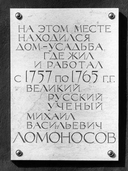 Мемориальная доска - место, где находилась усадьба М.В. Ломоносова, - Большая Морская ул., 61.