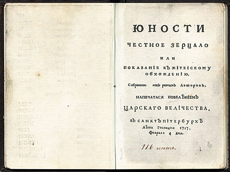 В 1717 году по указанию Петра I был написан первый в России учебник этикета «Юности честное зерцало, или Показание к житейскому обхождению, собранное от разных авторов».
