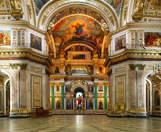 Комплекс из четырех соборов – памятников русской культовой архитектуры и художественно-декоративного убранства. Исаакиевский собор – главный православный храм Российской империи, памятник архитектуры позднего классицизма; Сампсониевский собор – храм в честь Полтавской победы, обеспечившей сохранность российской государственности; Смольный собор – жемчужина русского барокко; храм Воскресения Христова (Спас на Крови) – памятник императору Александру Второму Освободителю. Исаакиевский собор – уникальный памятник отечественной архитектуры, один из лучших кафедральных соборов Европы. Художественное оформление включает крупнейшее собрание русской монументальной живописи середины XIX века (более 150 ед. хранения). В художественно-декоративном убранстве – уникальные мозаичные произведения русских мастеров. Один из крупнейших в России витраж площадью около 30 кв. метров.