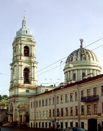 Строительство храма начато было в 1811 г. на месте сгоревшей деревянной Екатерининской церкви. Было приостановлено в связи с началом Отечественной войны 1812 г. и завершено в 1823 г. Архитекторы профессор А. А. Михайлов и В. А. Болотов. Строителем назначен купец И. Водовозов, надзирал за работами каменных дел мастер Н. Камельский. В своем основании церковь имела вид равноконечного креста, увенчанного одноглавым куполом. На верху купола стоял обитый свинцом ангел, в руках которого находился медный вызолоченный через огонь крест. Шар, на котором утверждался крест, тоже был вызолоченным. Кругом купола стояли 24 колонны коринфского ордера. С 1863 г. произошли наружные изменения храма: пристроена колокольня, устроена между колоннами стеклянная галерея, обиты белым листовым железом купол храма, вся кровля окрашена зеленой масляной краской. Закрыт в 1935 г. В 1942 г. снаряды попали только в часовенку, но церковь осталась невредима. В 1996 г. передана верующим и освящена. Храм является культурным объектом федерального значения. Адрес: В. О. Кадетская линия, 27а