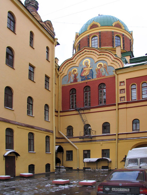 Иоанно-Богословское подворье Леушинского монастыря было основано по благословению Иоанна Кронштадтского. В 1894 г. состоялось освящение главного храма – церкви святого апостола и евангелиста Иоанна Богослова. В написанном сестрами иконостасе находилась чтимая Леушинская икона Божией Матери. До настоящего времени сохранились росписи в куполе храма. В этой церкви часто служил Иоанн Кронштадтский. В советские годы здание Леушинского подворья перешло в ведение психоневрологического диспансера. Храм Леушинского подворья был возвращен церкви в июле 2000 г. Сюда вернулись и великие святыни Леушинского монастыря. Одной из главных является выносной Крест с мощами святителя Иоанна Предтечи. При храме открыты учебные курсы: церковного чтения, золотного шитья, иконописи и реставрации и др. Подворье занимается издательской деятельностью. Богослужения совершаются ежедневно.