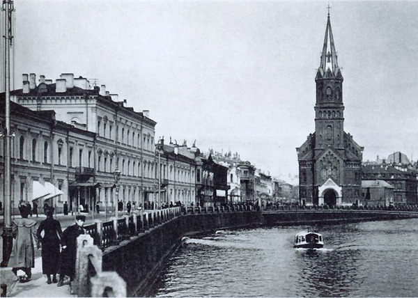 Построена в 1862-1865 гг. Архитекторы: Г. А. Боссе, Д. И. Гримм. Одна из первых в Петербурге имела кирпичную отделку. Принадлежала к лучшим образцам архитектурных произведений. Реконструкция: 1872-1874 гг. (архитектор К. К. Рахау). В начале 1930-х гг. церковь была снесена (остался нетронутым только каркас здания) и на ее месте построен Дворец культуры и техники работников связи. Адрес: Б. Морская ул., 58